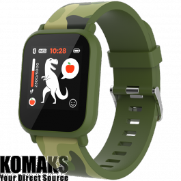 kids smart watch, 1.3 inches IPS full touch screen, green plastic body, IP68 waterproof, BT5.0, multi-sport mode, built-in kids game, compatibility with iOS and android, 155mAh battery, Host: D42x W36x T9.9mm, Strap: 240x22mm, 33g